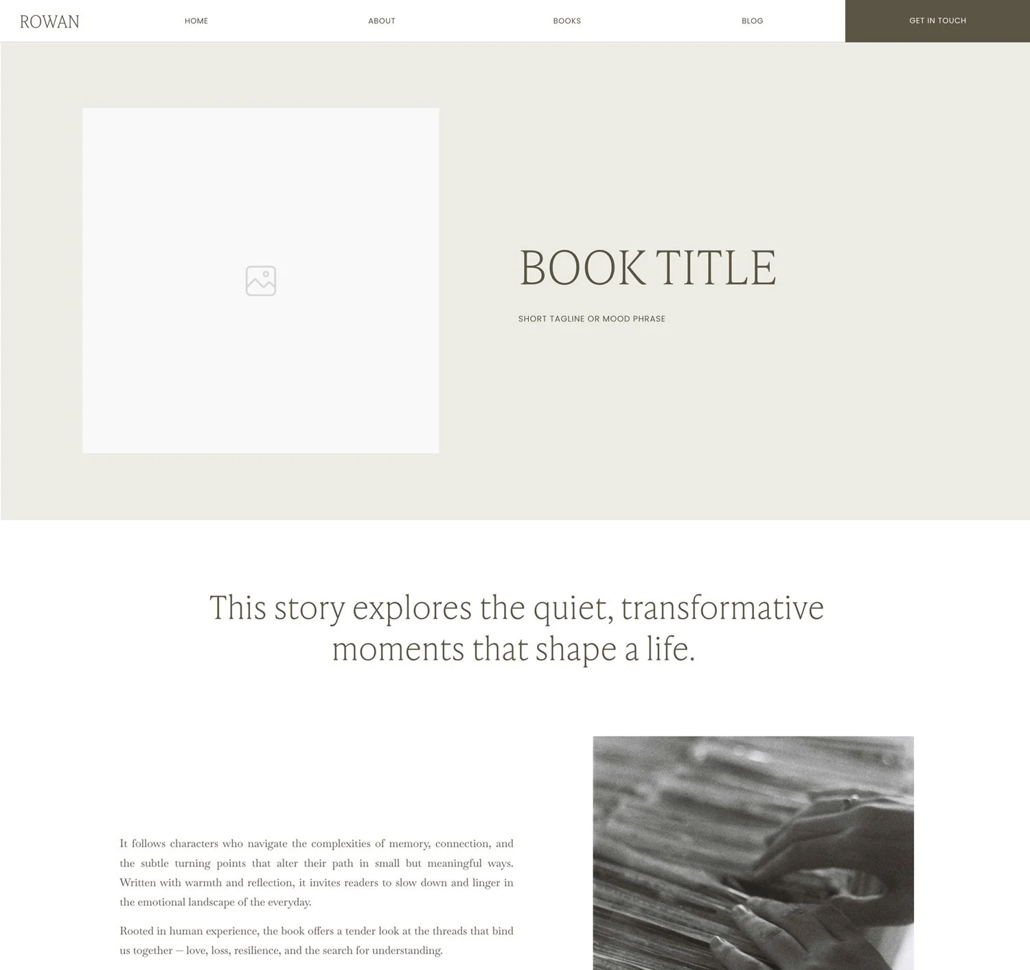Build a website that feels like an extension of your work. Rowan is a thoughtful, emotionally grounded framework designed for authors, writers, and creatives who want a space that feels sincere, calm, and deeply human.