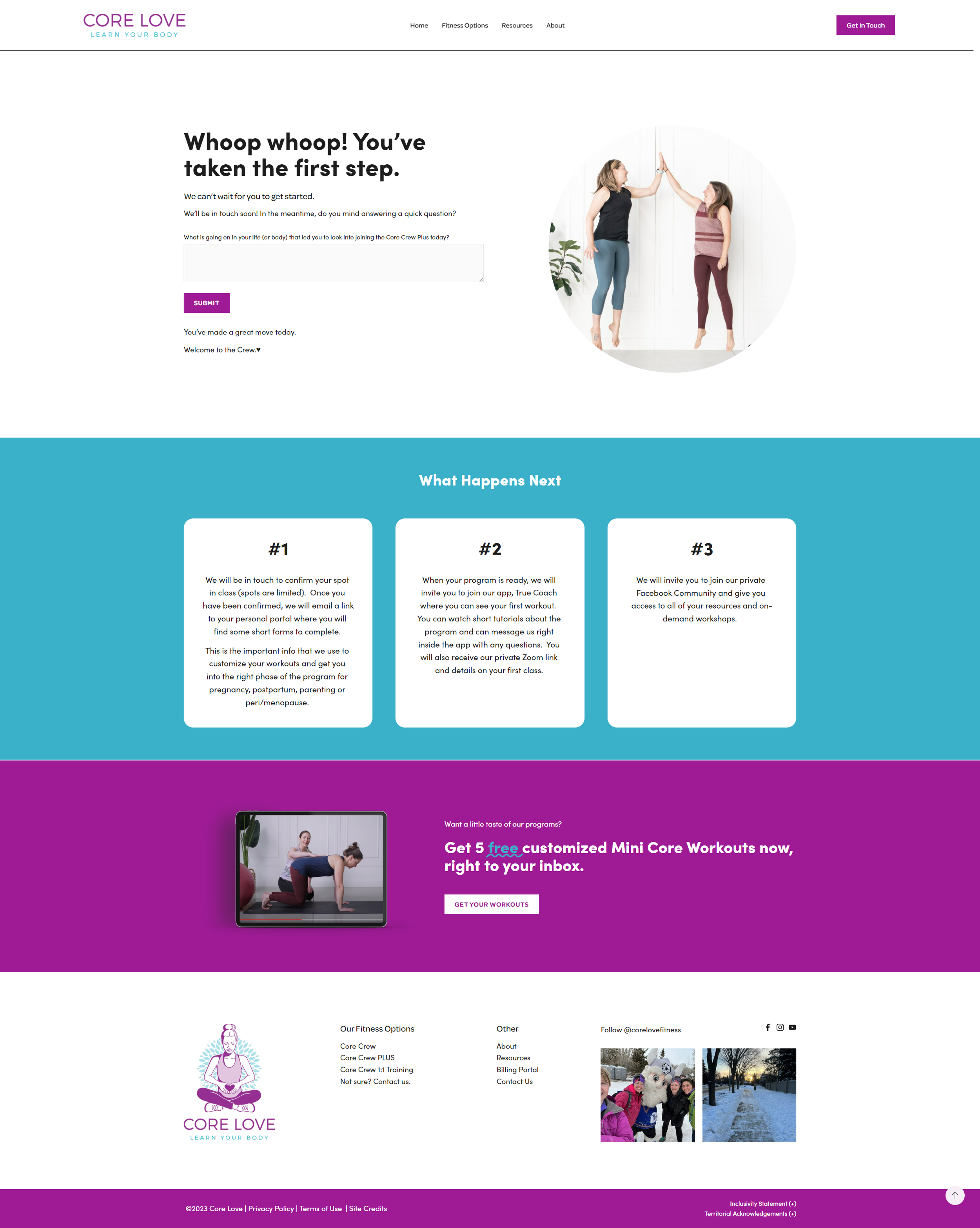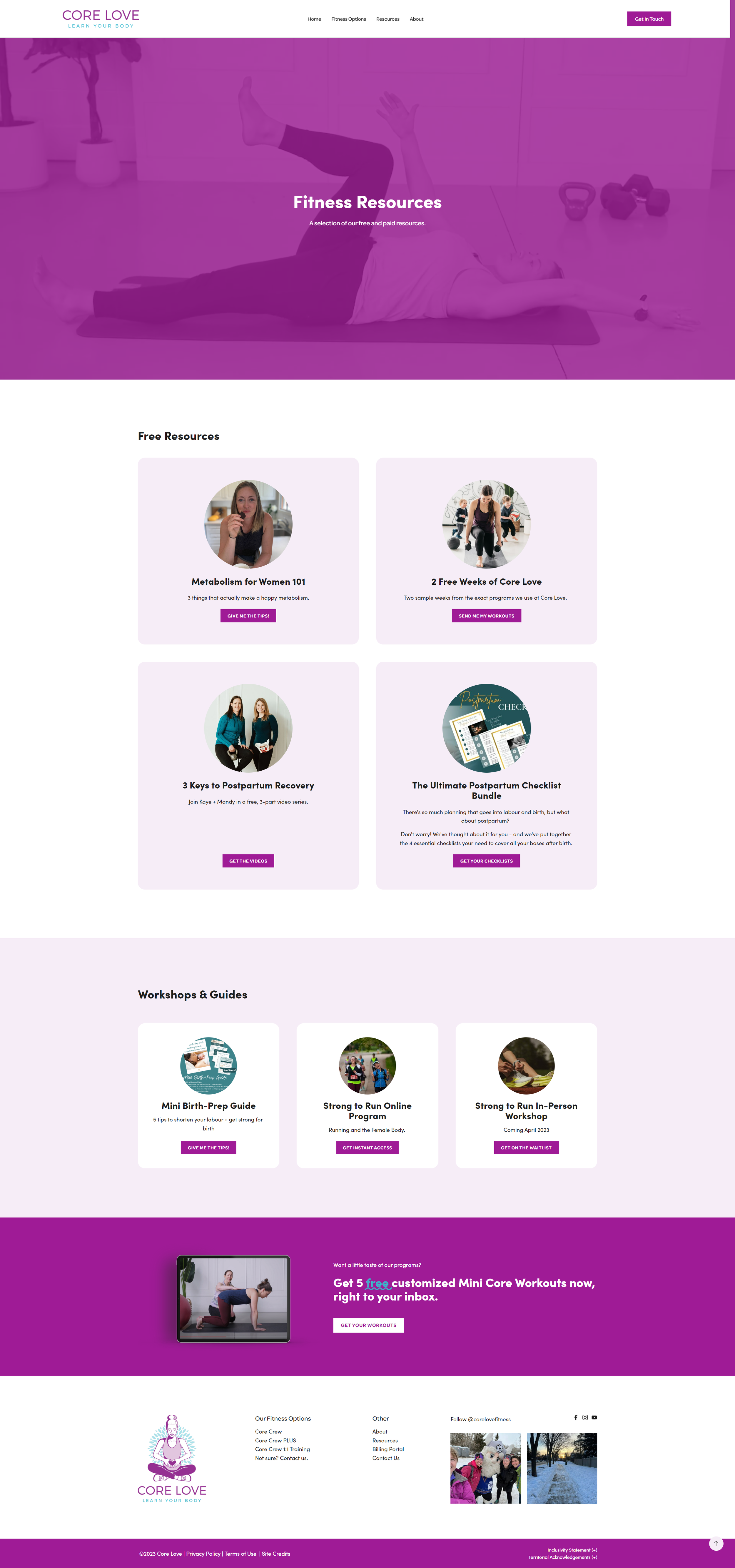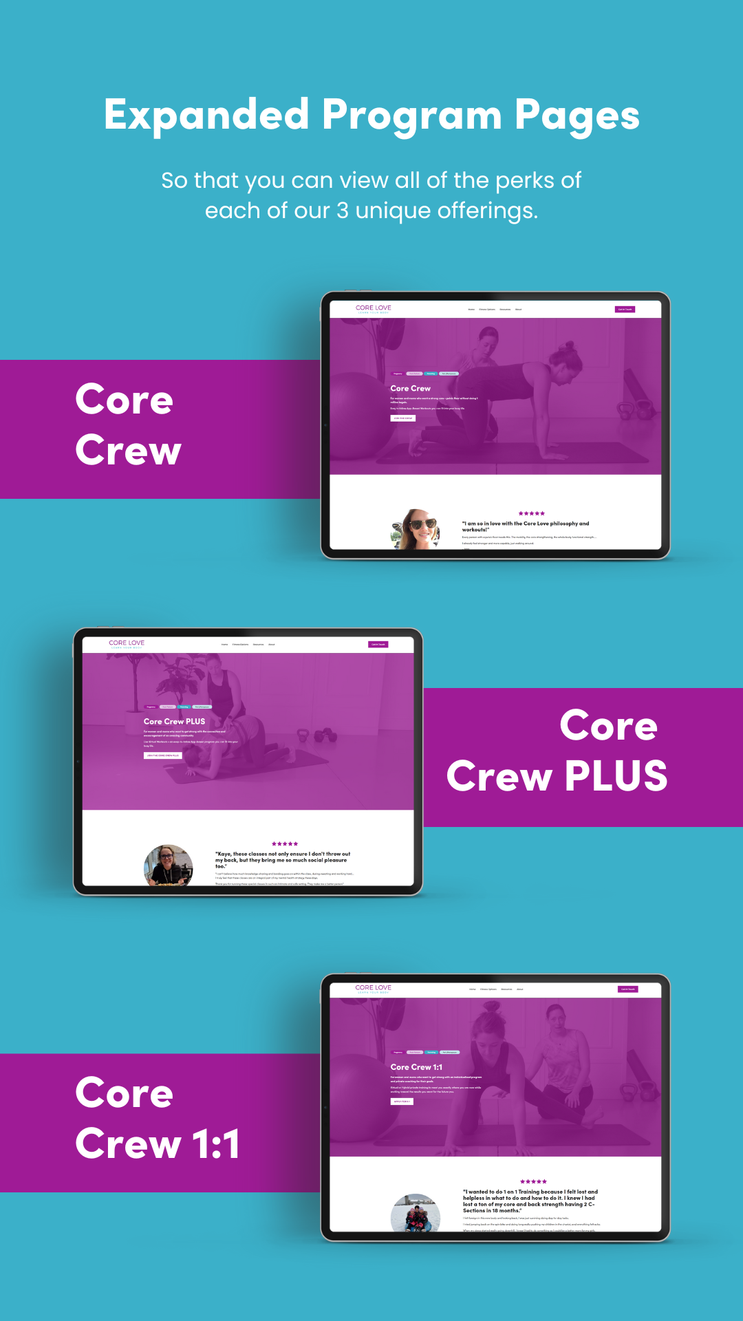 The revamped Core Love website serves as a virtual space where individuals feel seen and inspired to embark on a transformative fitness journey with Core Love.