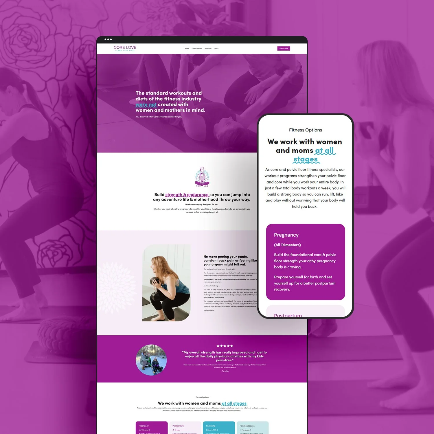 Revamping Core Love's digital home was a collaborative journey with owner Kaye, centered around refining their focus on strength training, particularly core and pelvic floor strengthening. Their existing Squarespace website fell short of capturing the essence of the fitness programs, leaving visitors feeling lost in the myriad of options. Kaye's goal was clear: to create an organized platform where visitors could effortlessly navigate the fitness options and swiftly identify the program tailored to their needs.