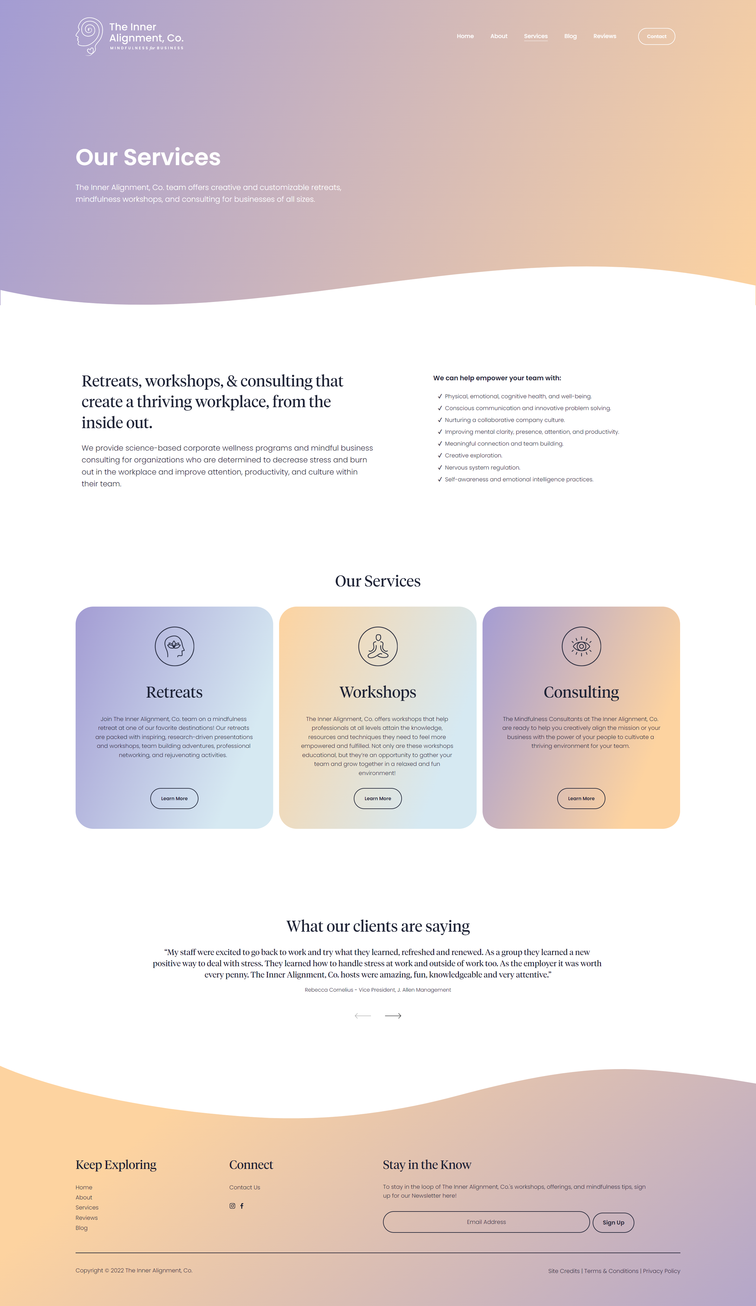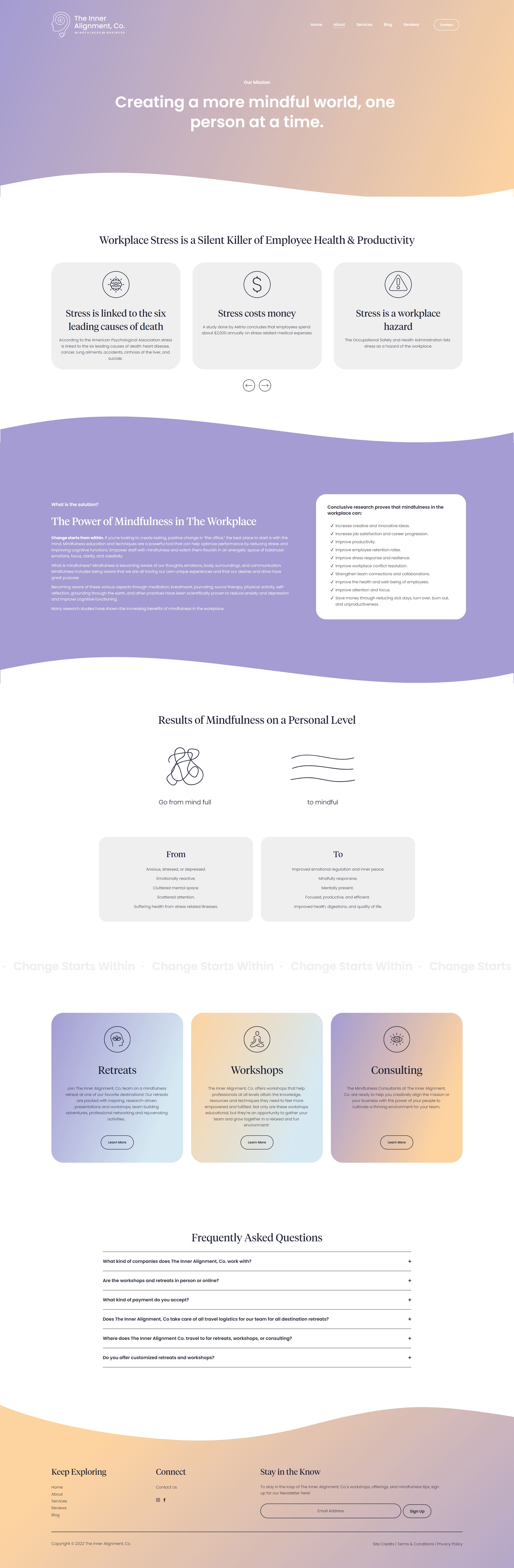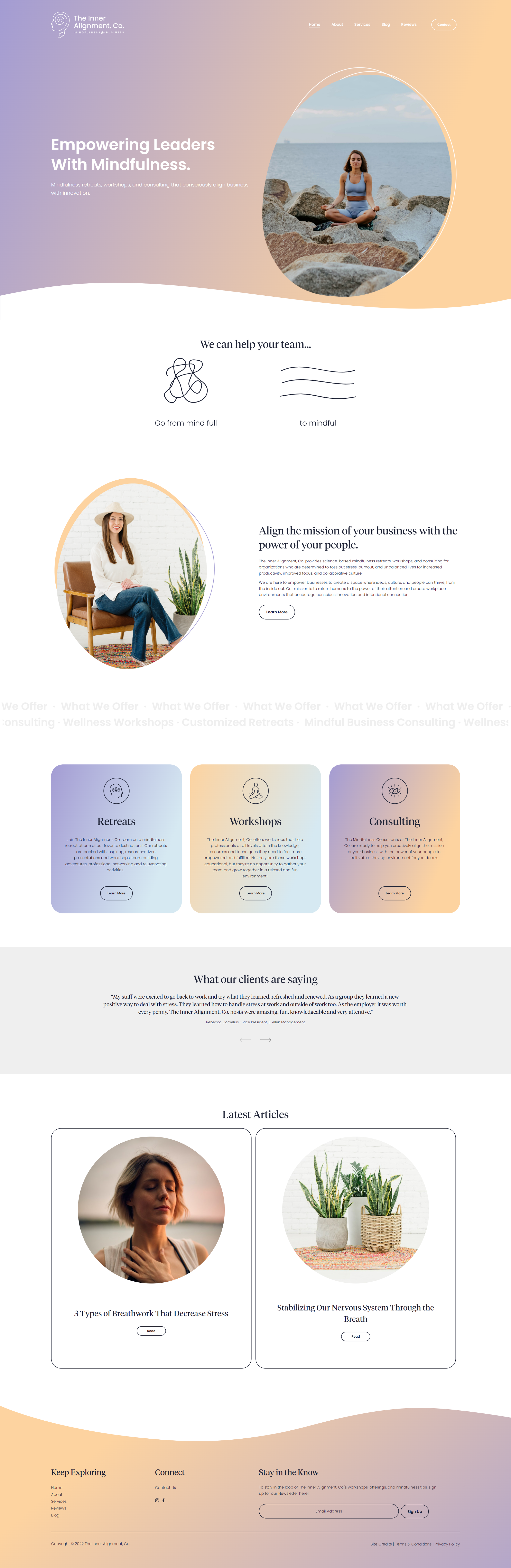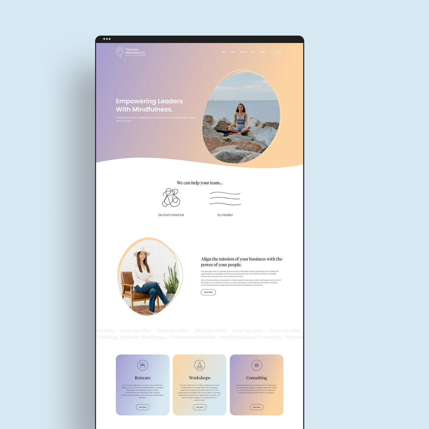 Collaborating with The Inner Alignment, Co. (TIAC), I embarked on a project to craft a digital space that reflects their mission of providing science-backed mindful solutions for businesses.