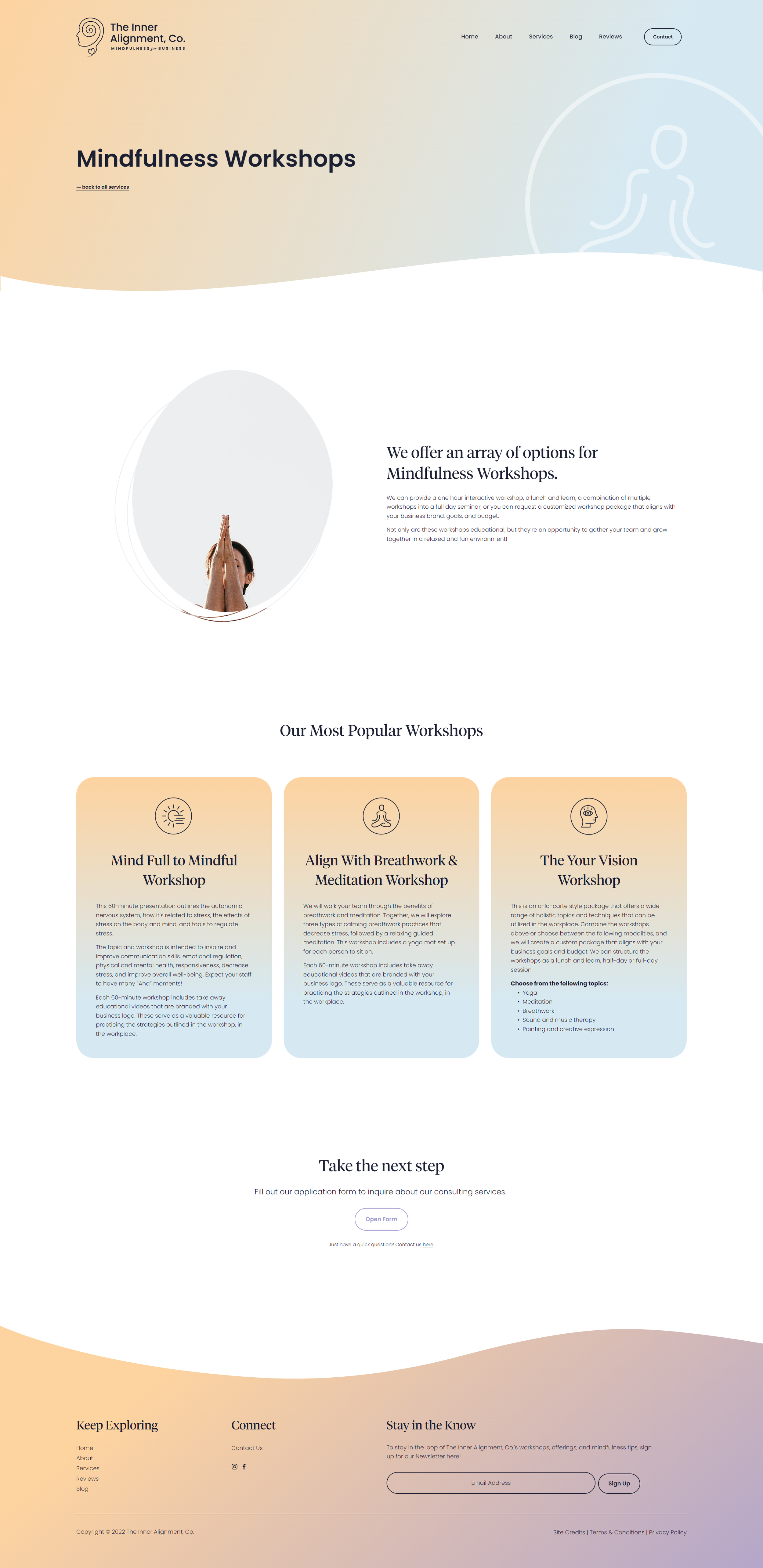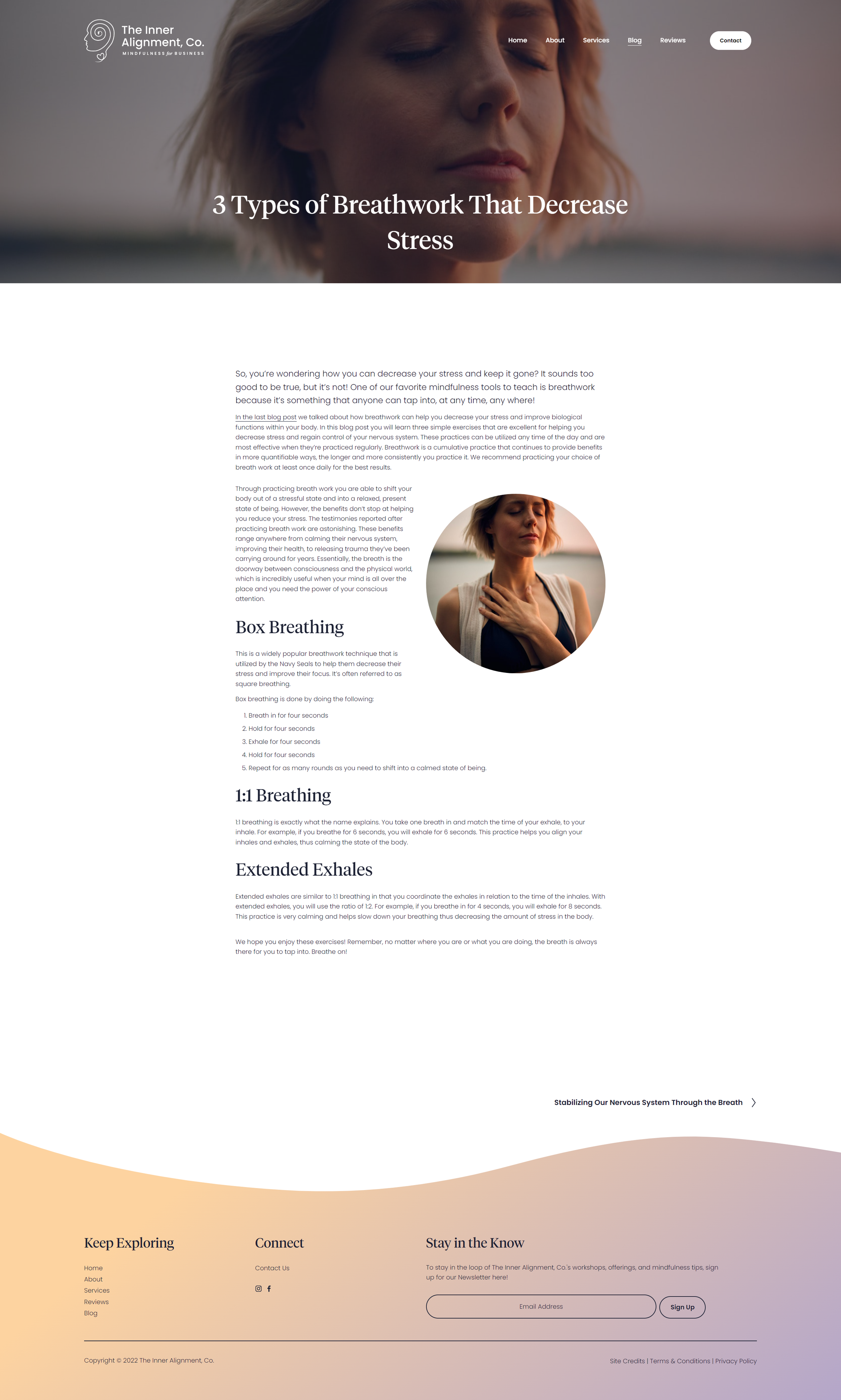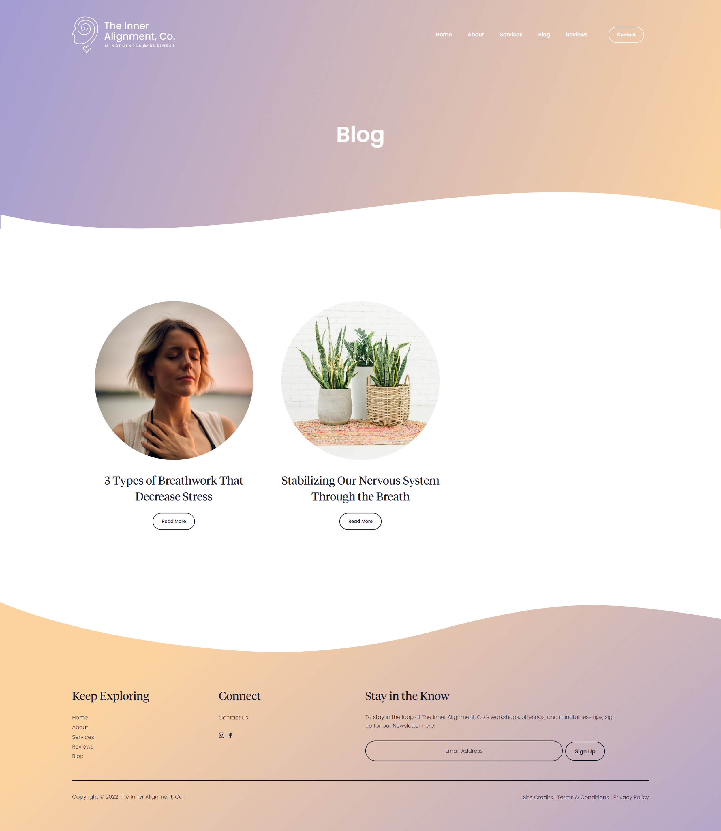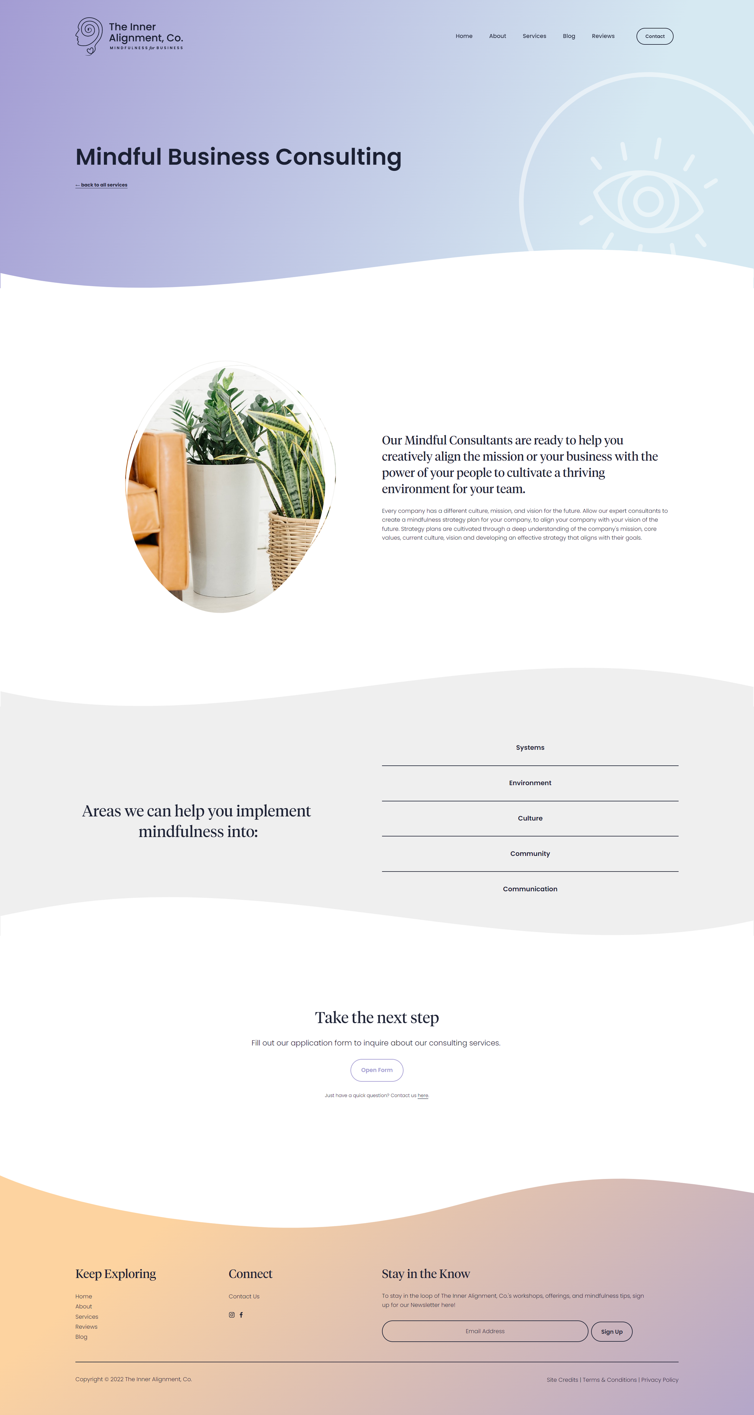 Collaborating with The Inner Alignment, Co. (TIAC), I embarked on a project to craft a digital space that reflects their mission of providing science-backed mindful solutions for businesses.